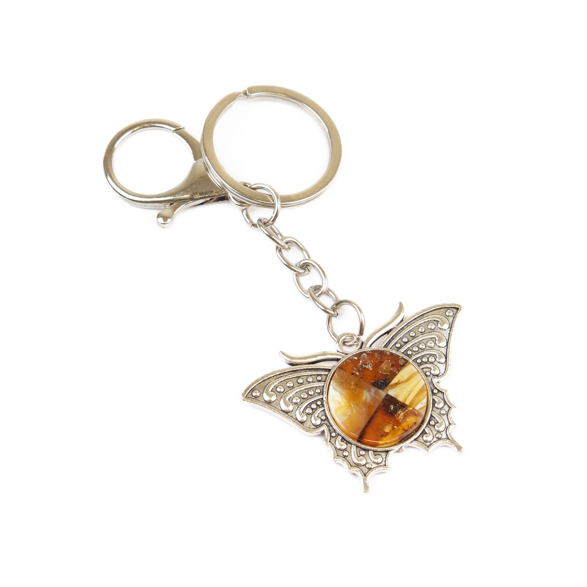 Atslēgu piekariņš ar dzintaru un taureņa dizainu.
