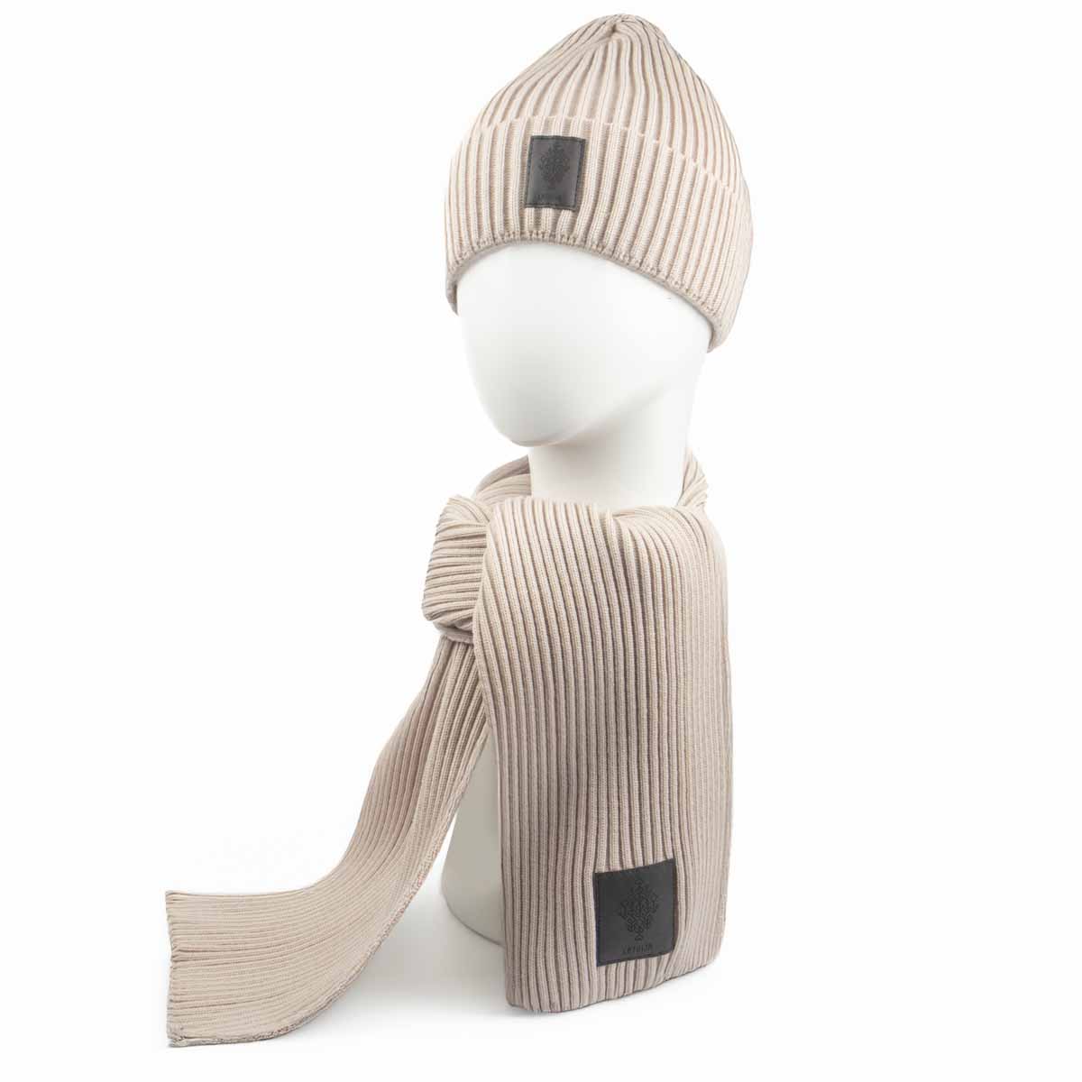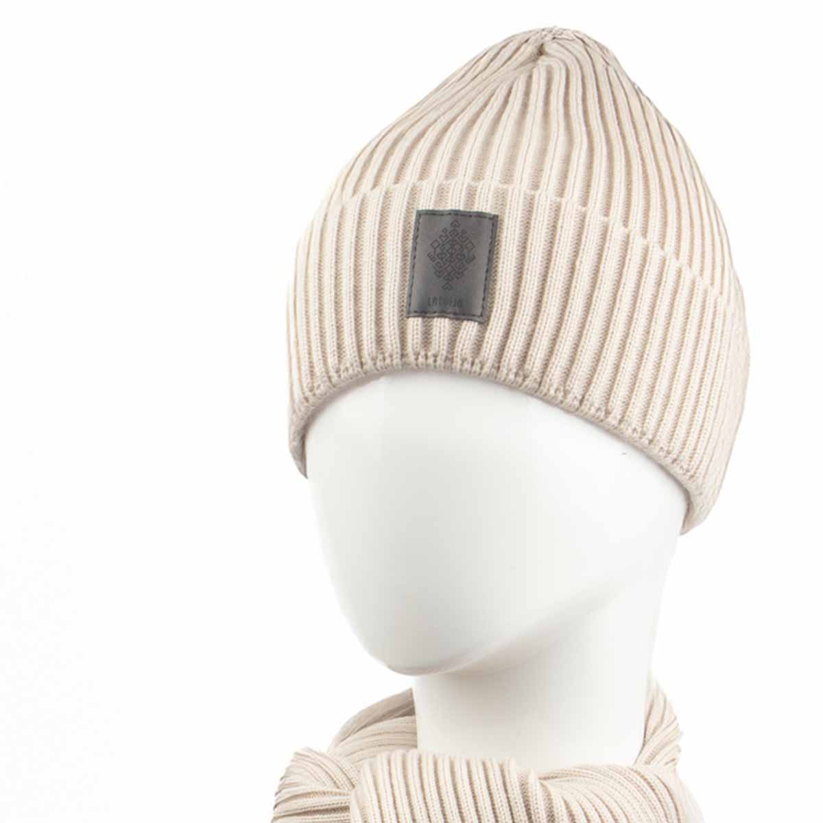 Cepure un Šalle ar Dzīvības Koka un Latvijas Zīmi, Gaiši Bēša
