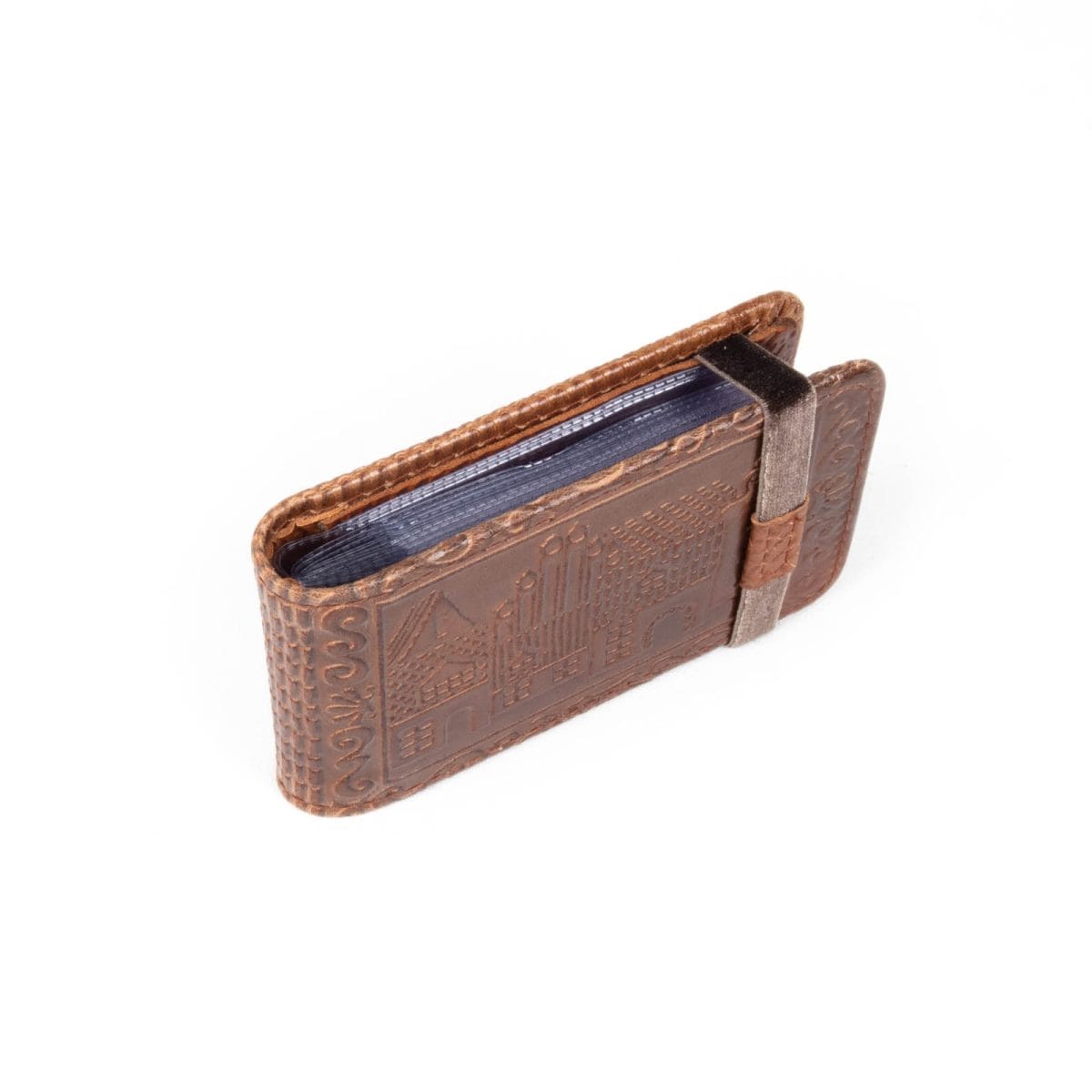 Dabīgās Ādas Karšu Turētājs ar Vecrīgas Motīvu, 7.5×11.5 cm