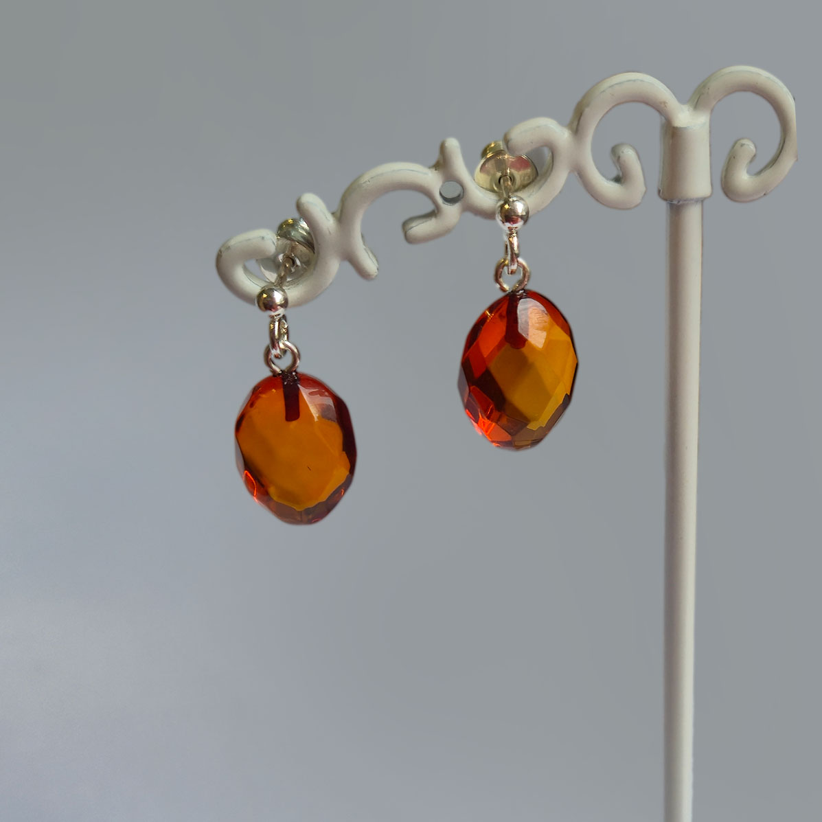 Oranži dzintara auskari ģeometriskās formās.