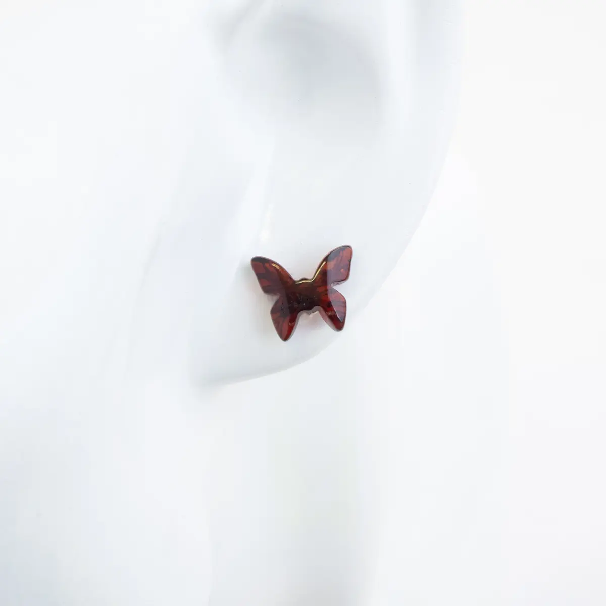 Moderni taureņa formas dzintara auskari.
