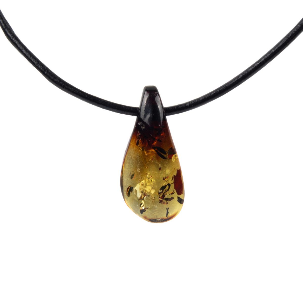 Baltijas jūras dzintara kaklarota ar ādas siksniņu un sudraba krāsas aizdari.