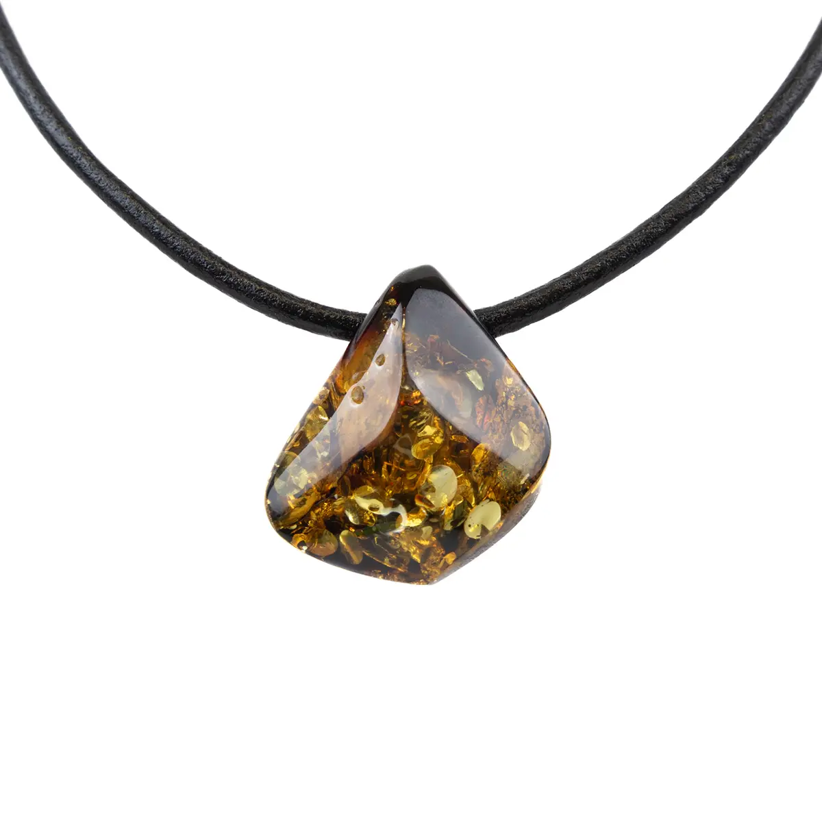 Baltijas jūras dzintara kaklarota ar ādas siksniņu un sudraba krāsas aizdari.