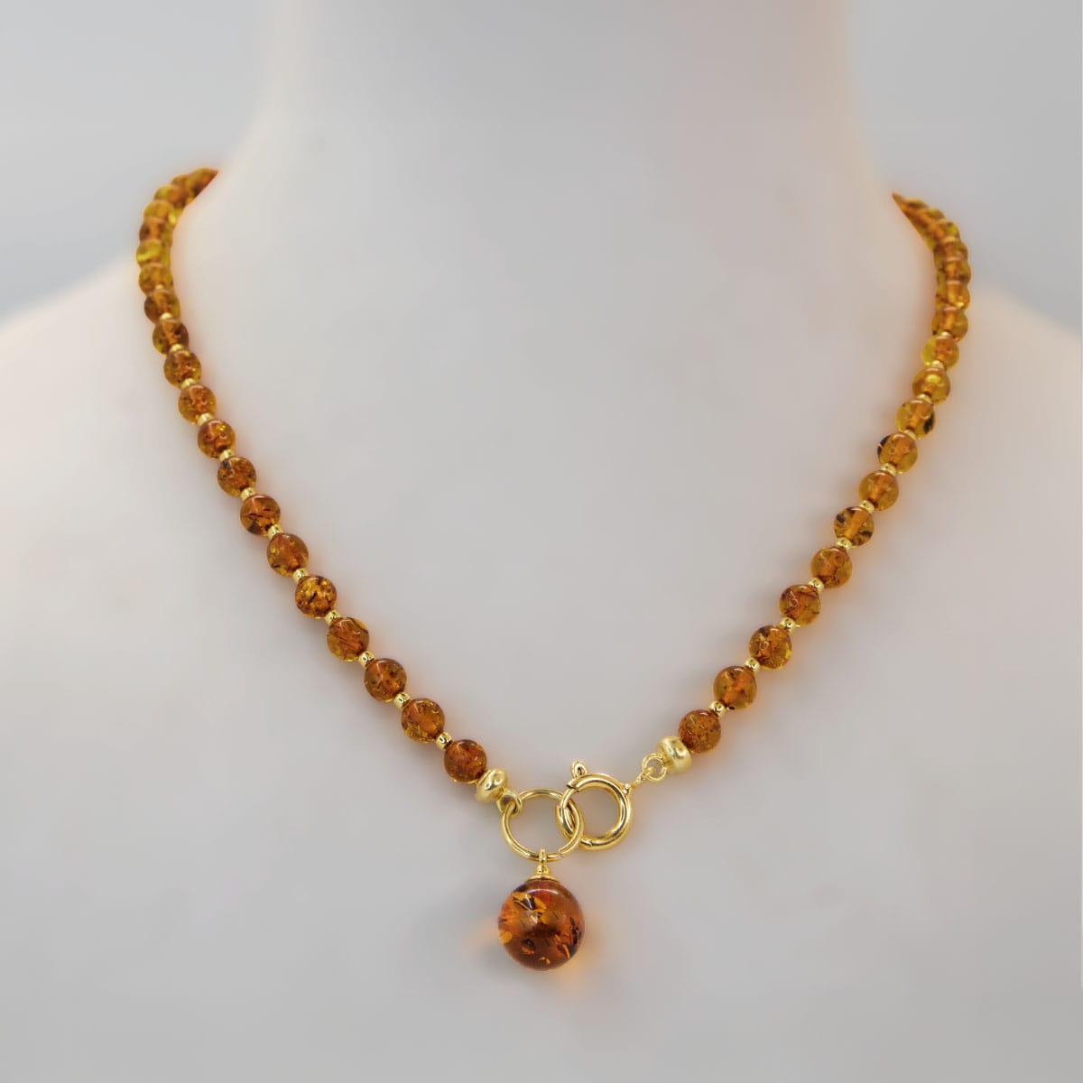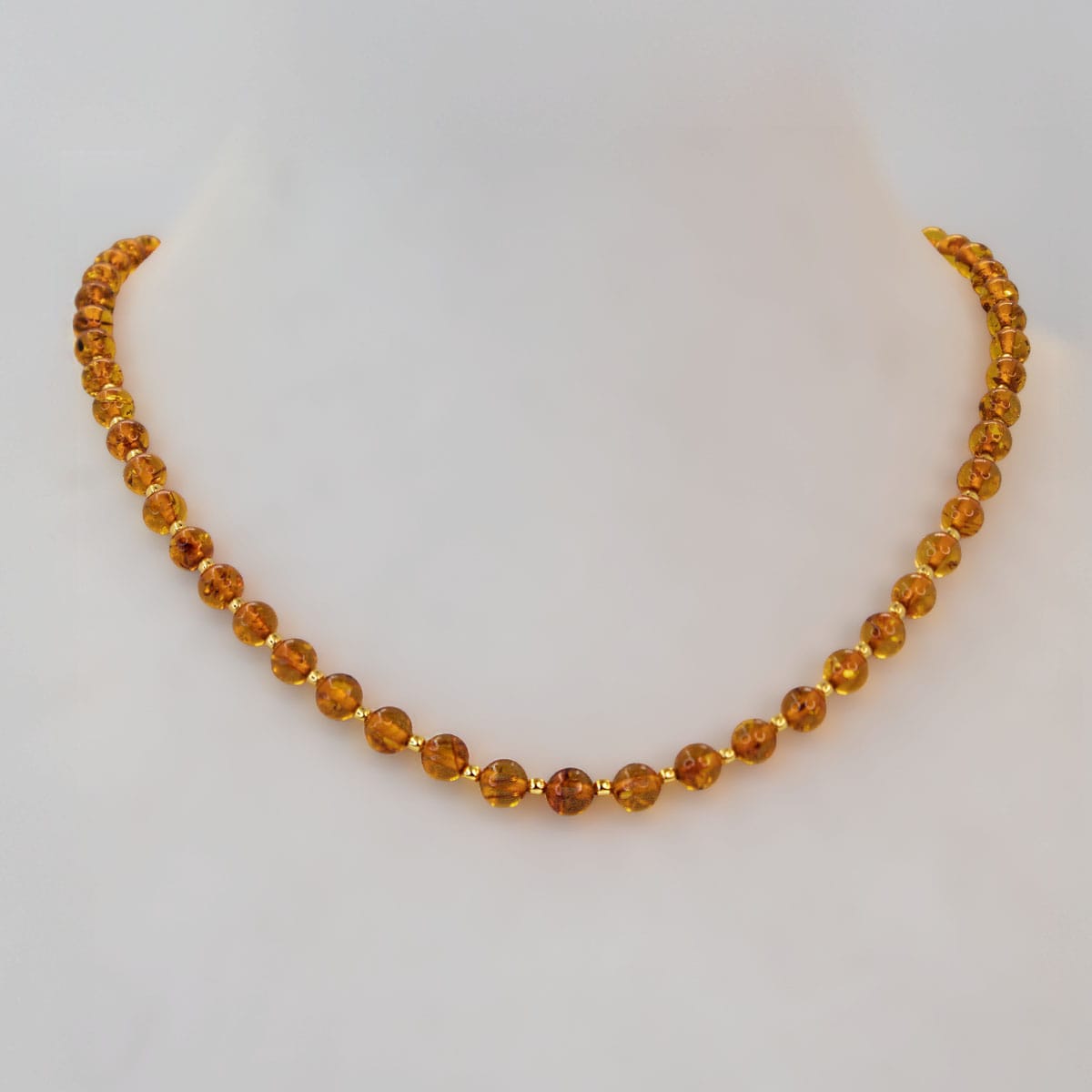 Lūdzu, ņemiet vērā: tā kā neviens dzintara gabals nav pilnīgi vienāds, jūsu kaklarota var un, visticamāk, atšķirsies no attēlā redzamās.