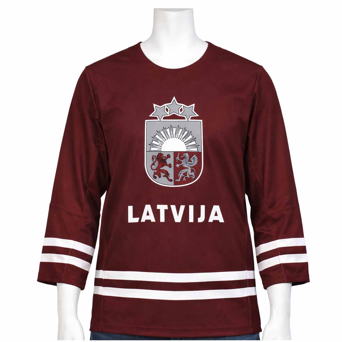 Hokeja fanu krekls LATVIJA ar ģerboni. Lieliska dāvana īstiem hokeja faniem! Pieejams dažādos izmēros.