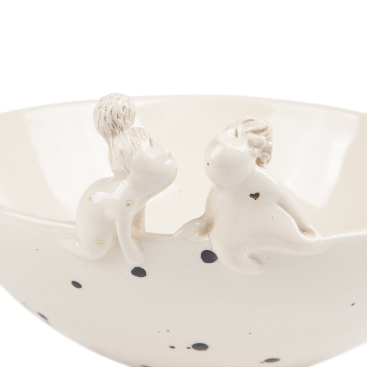 Rūpīgs un līdz pēdējais detaļai nostrādāts roku darbs. Bļoda veidota no baltā māla, kas pārklāts ar caurspīdīgu glazūru un dekorēts ar 12 karātu zelta pārklājumu.