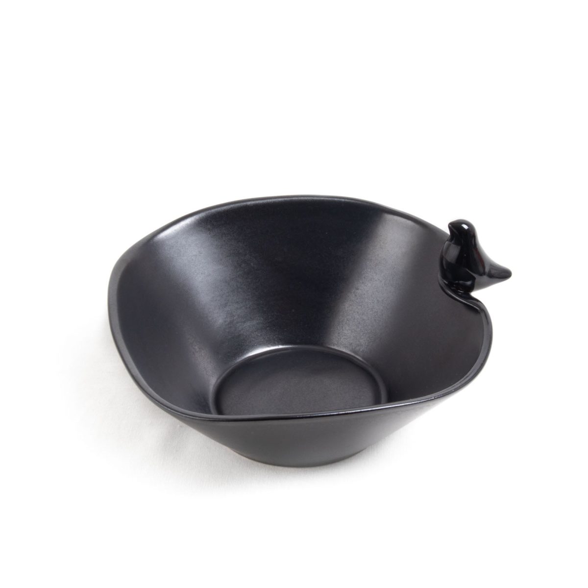 Melna keramikas bļoda ar putniņu. Augstums bez dekora 6.5 cm, ⌀ 16.5 cm, tilpums 500 ml. Mazgāt ar rokām.