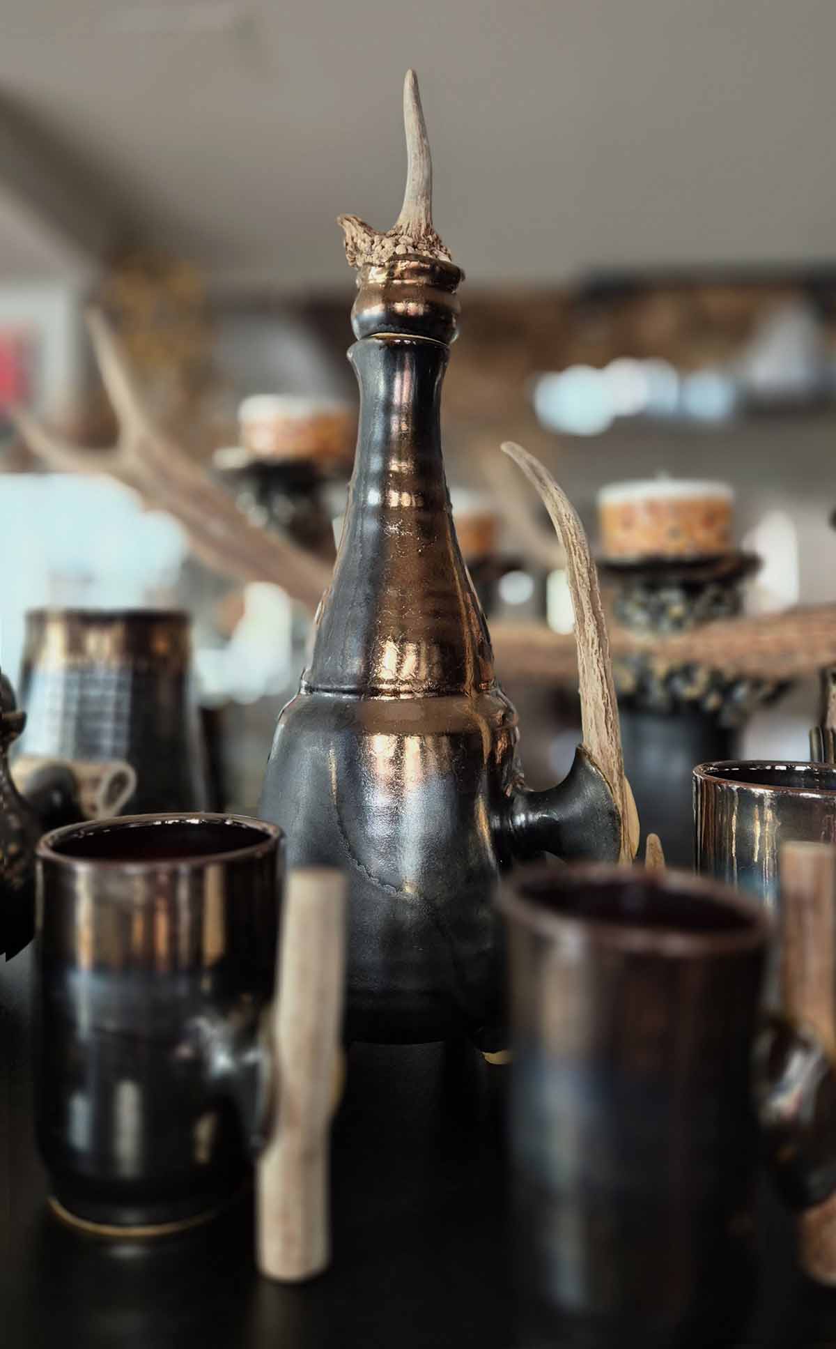 Keramiķe veido māla keramiku, ko rotā ar ragu elementiem. Ragi tiek iegūti dabiskā ceļā — savākti mežā pēc tam, kad dzīvnieki tos ir nometuši, tādējādi nodrošinot cieņpilnu un ilgtspējīgu attieksmi pret dabu.