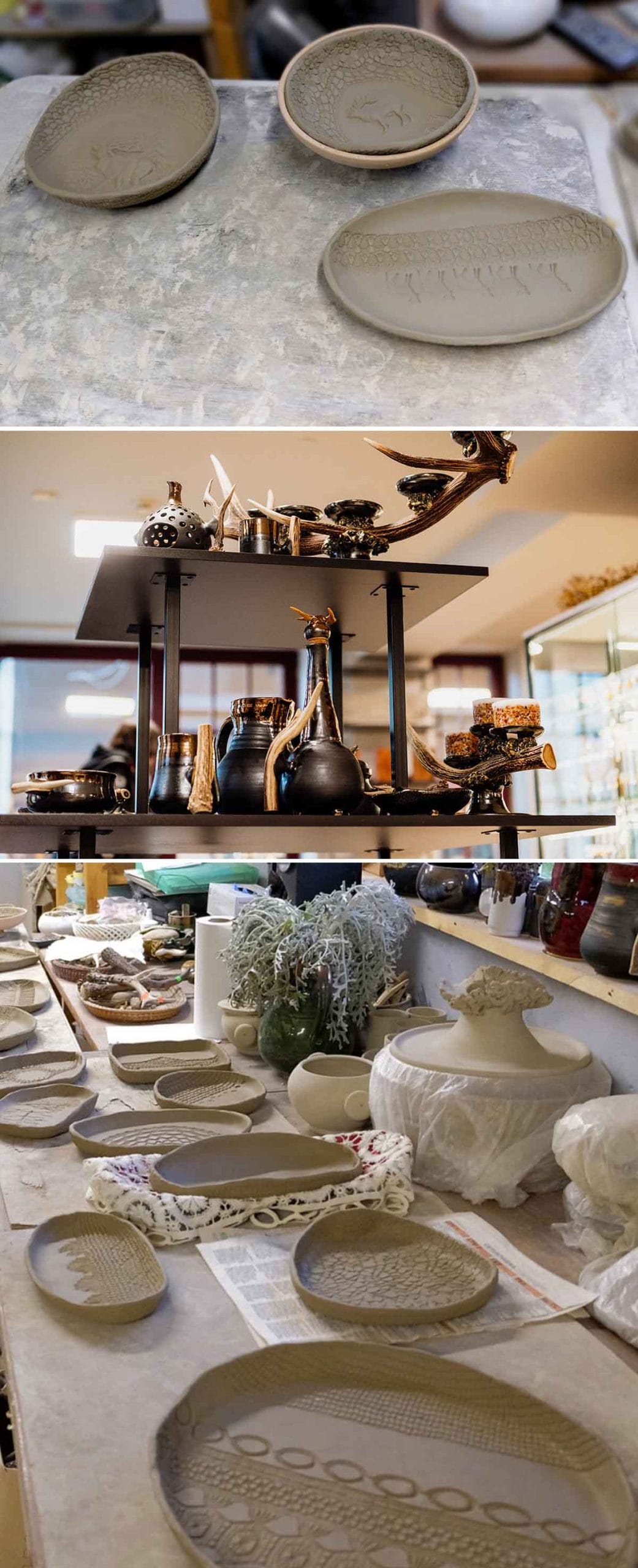 Keramiķe veido māla keramiku, ko rotā ar ragu elementiem. Ragi tiek iegūti dabiskā ceļā — savākti mežā pēc tam, kad dzīvnieki tos ir nometuši, tādējādi nodrošinot cieņpilnu attieksmi pret dabu.