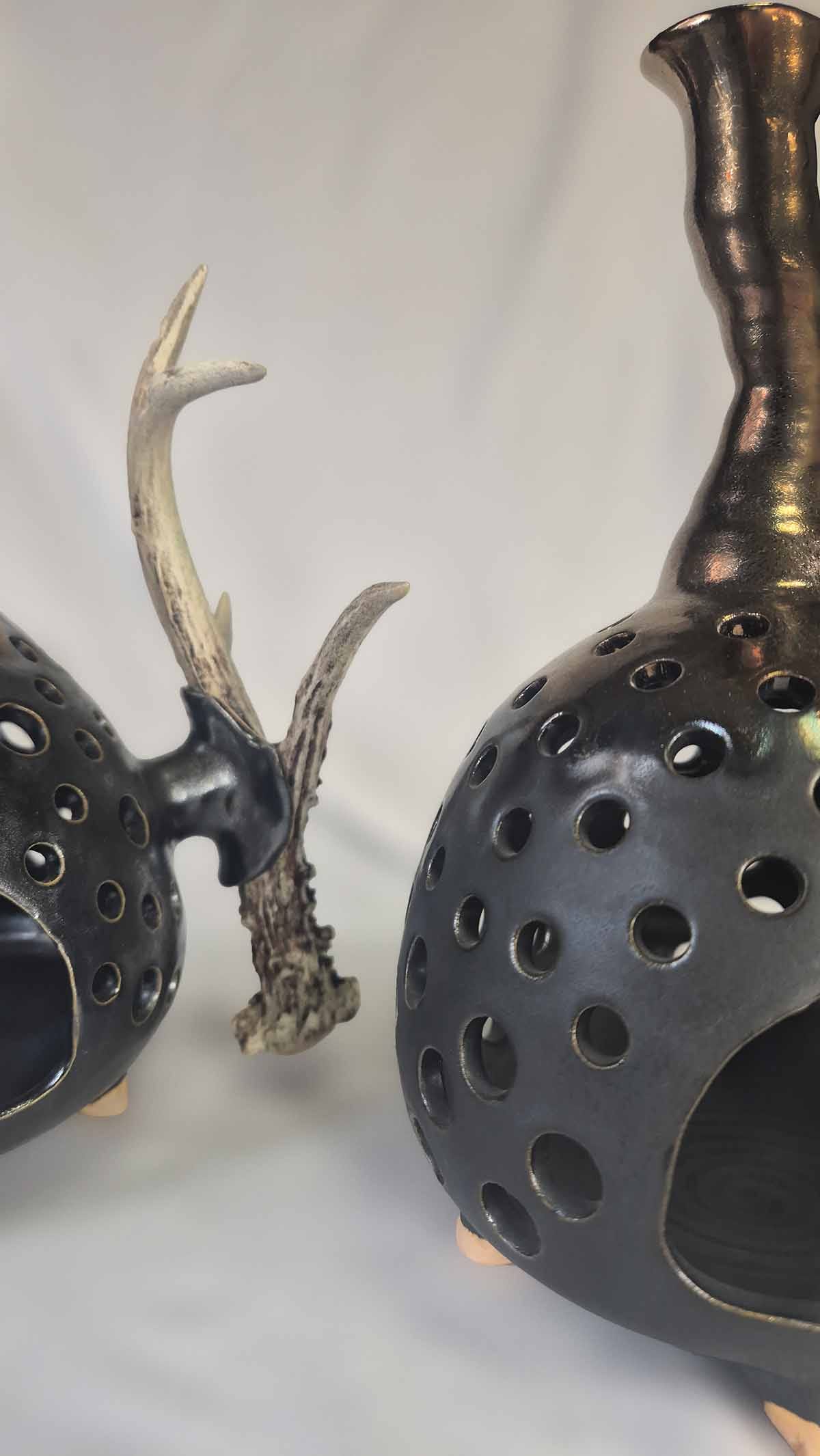 Keramiķe veido māla keramiku, ko rotā ar ragu elementiem. Ragi tiek iegūti dabiskā ceļā — savākti mežā pēc tam, kad dzīvnieki tos ir nometuši, tādējādi nodrošinot cieņpilnu un ilgtspējīgu attieksmi pret dabu.
