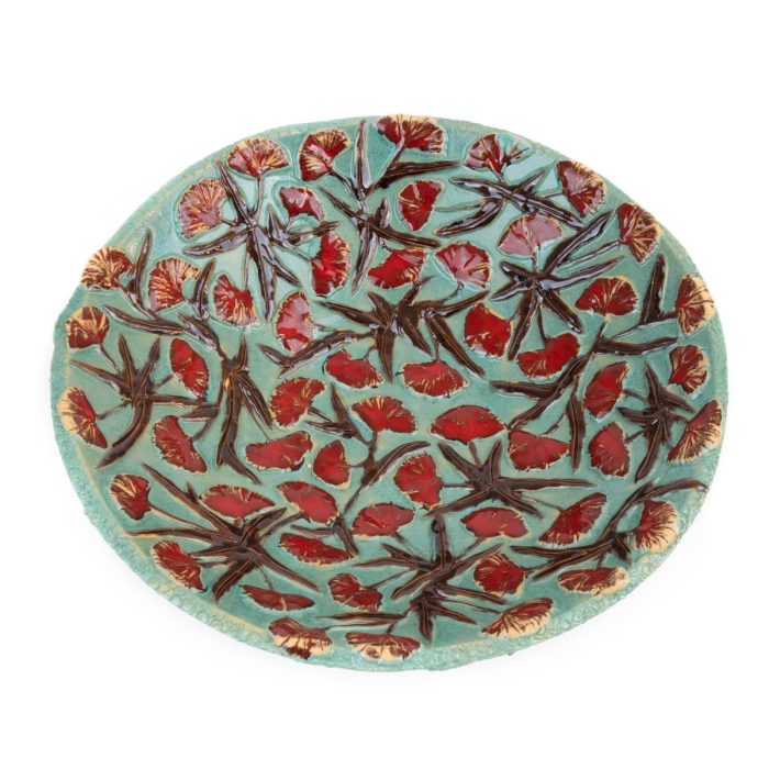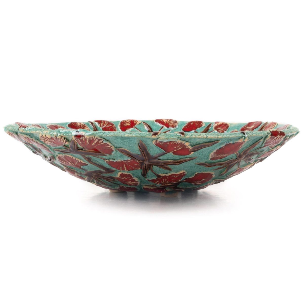 Keramikas Trauks ar Sarkaniem Ziediem, Tirkīza, ⌀28 cm