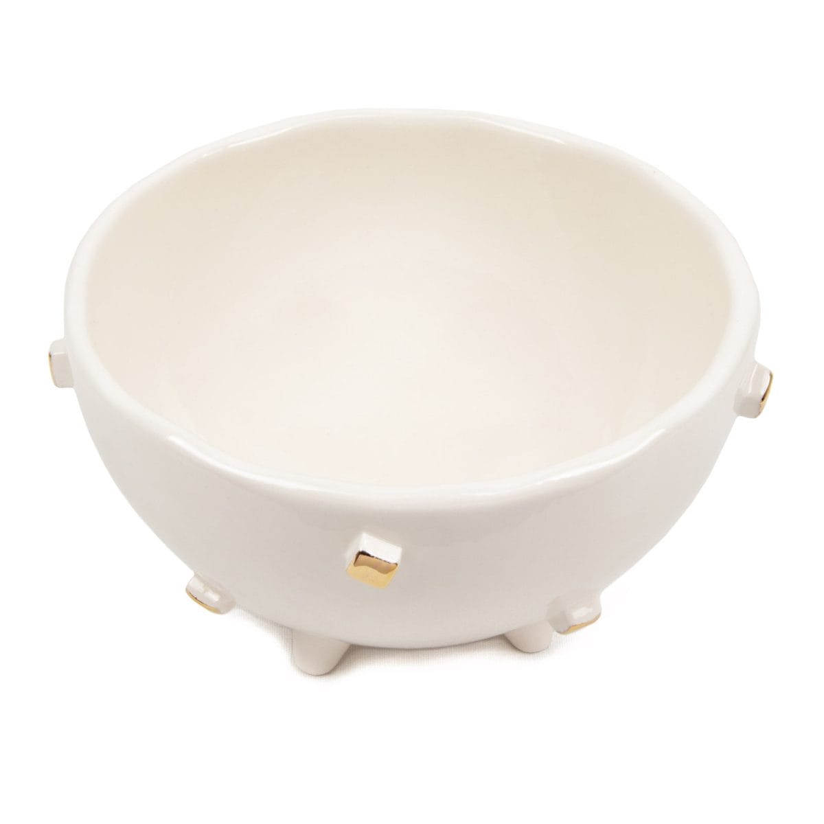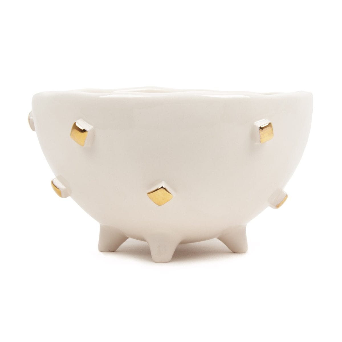 Keramikas trauks veidots no baltā māla, kas pārklāts ar glazūrām. Izmēri: ⌀ 16.5 cm, augstums – 9 cm.