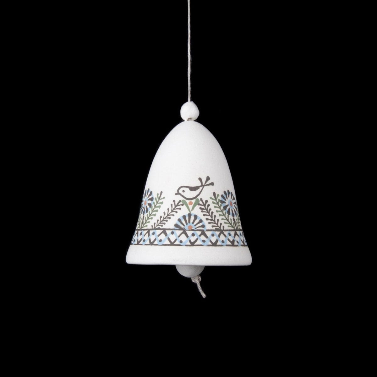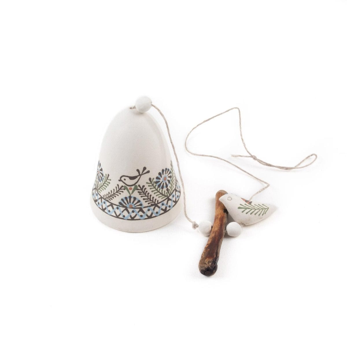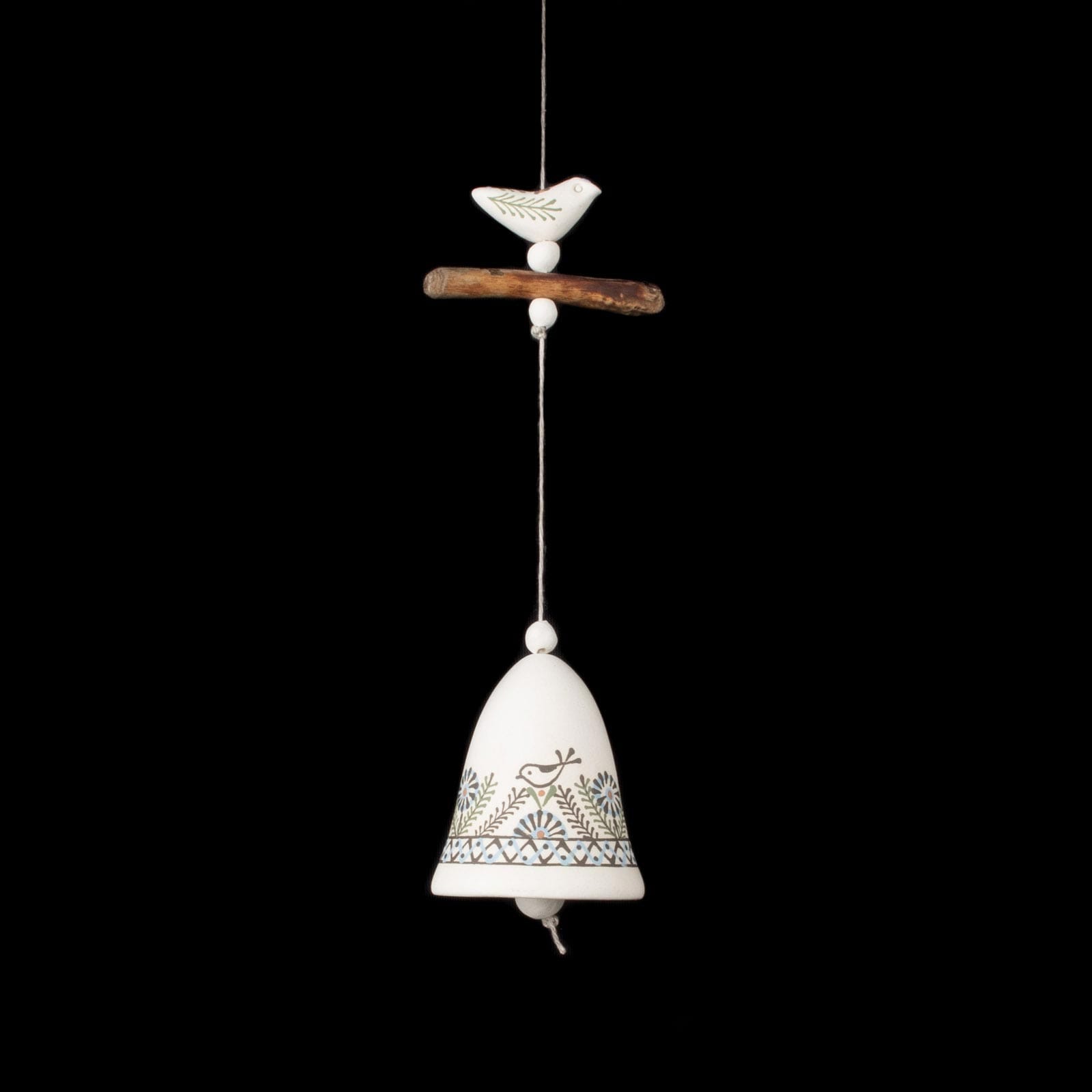 Keramikas Zvans ar Ziediem un Putniem, Balts