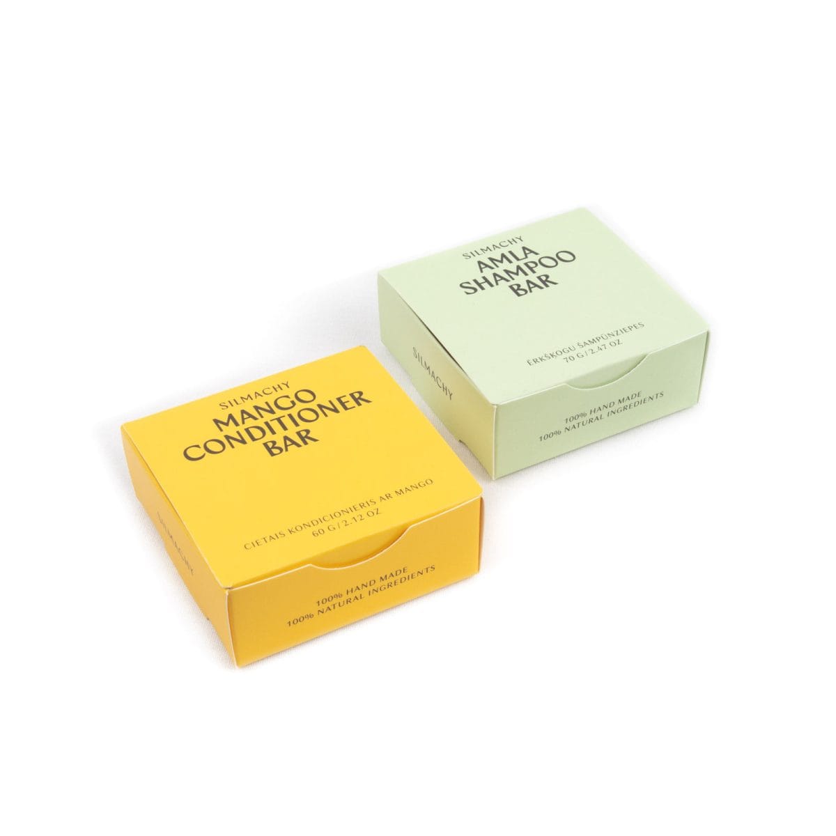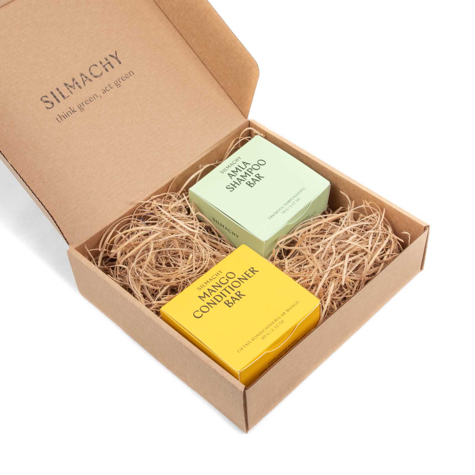 Lativijā ražots matu kopšanas komplekts. Abi produkti ir iepakoti viegli pārstrādājamā papīra iepakojumā. Cietais formāts tos ļauj ērti paņemt līdzi visur. Veselīgi un skaisti mati – tā ir Silmachy kvalitāte.