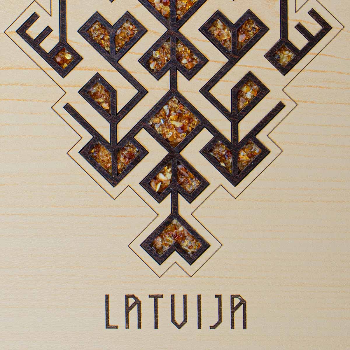 Vāku rotā dzintara mozaīkā veidots etnogrāfiskais raksts “Dzīvības Koks” – senais simbols, kas iemieso dzīvības nepārtrauktību, saknes un augšupeju.