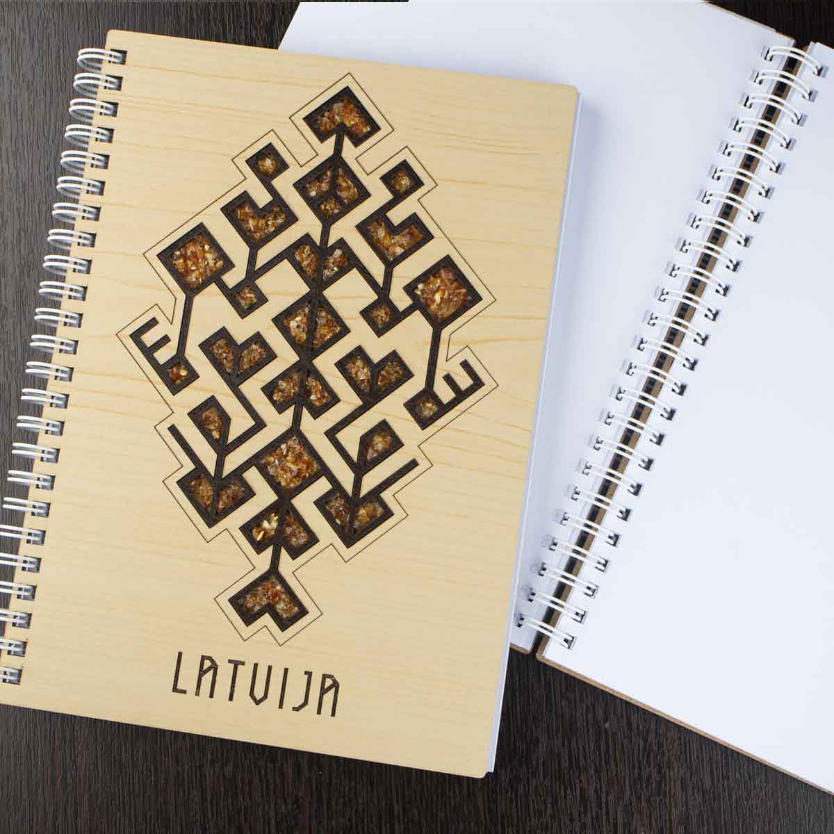 Piezīmju grāmata apvieno dabas materiālu siltumu un latviskā dizaina spēku.