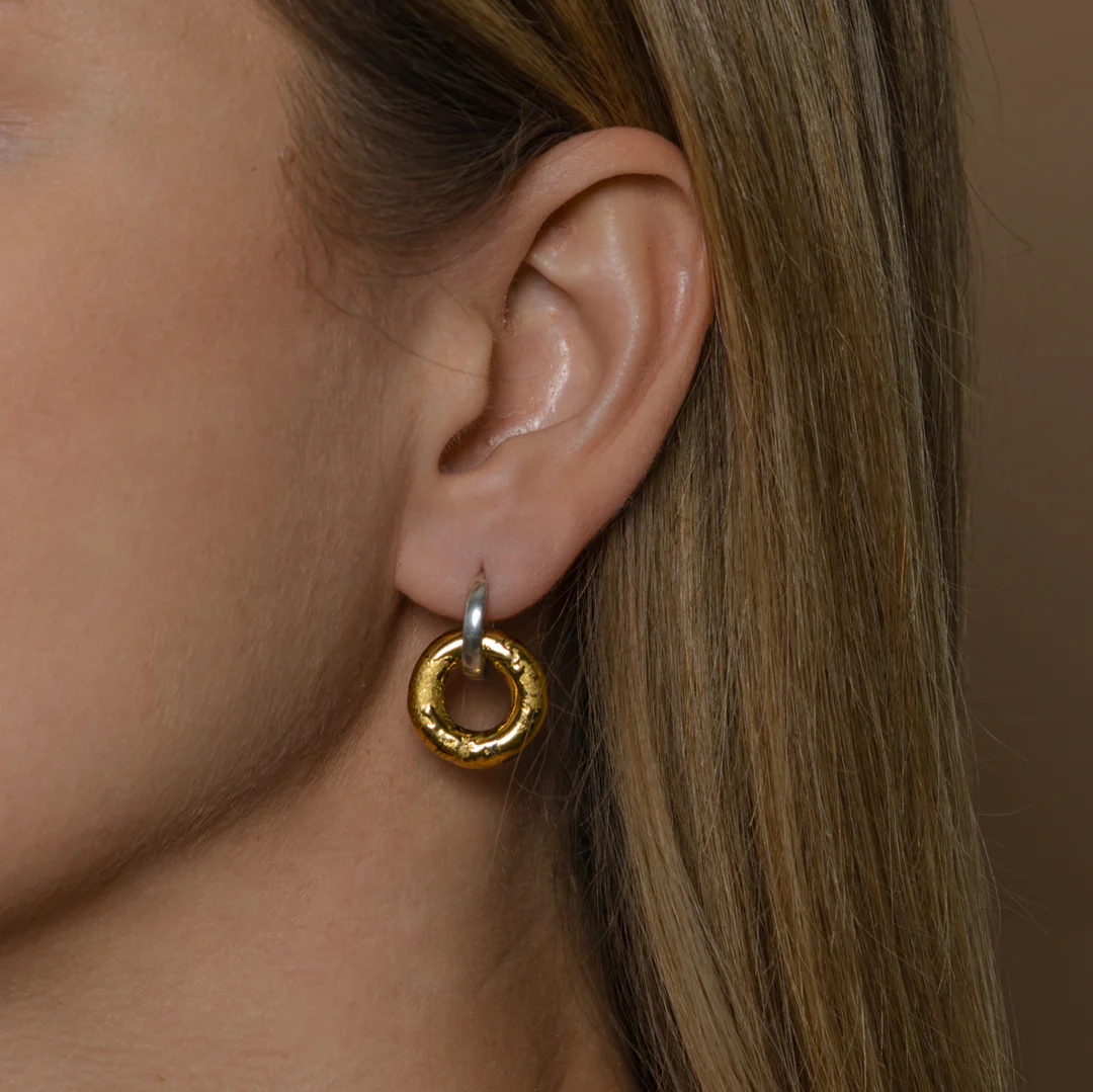 Šie porcelāna auskari ir divpusēji – viena puse ir spīdīga, ideāli piemērota spilgtākam izskatam, bet otra puse ir matēta, kas viesīs neitrālāku noskaņu. Daudzpusīgais rotājums spēs izdaiļot jebkuru apģērbu gan ikdienā, gan kokteiļu vakaros.