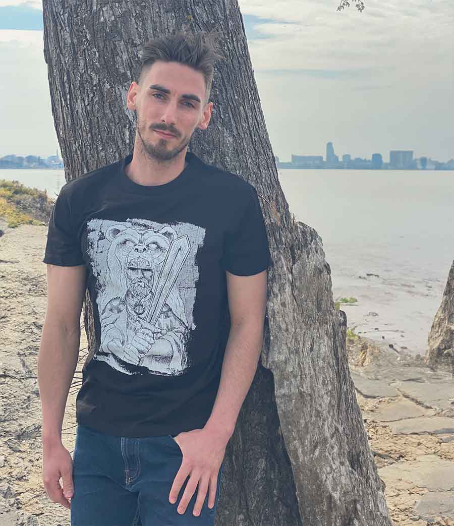 Vīriešu T-krekls Lāčplēsis. Pašmāju veidots dizains mūsdienīgā skatījumā. 100% kokvilna, kas padara kreklu maigu un elastīgu.