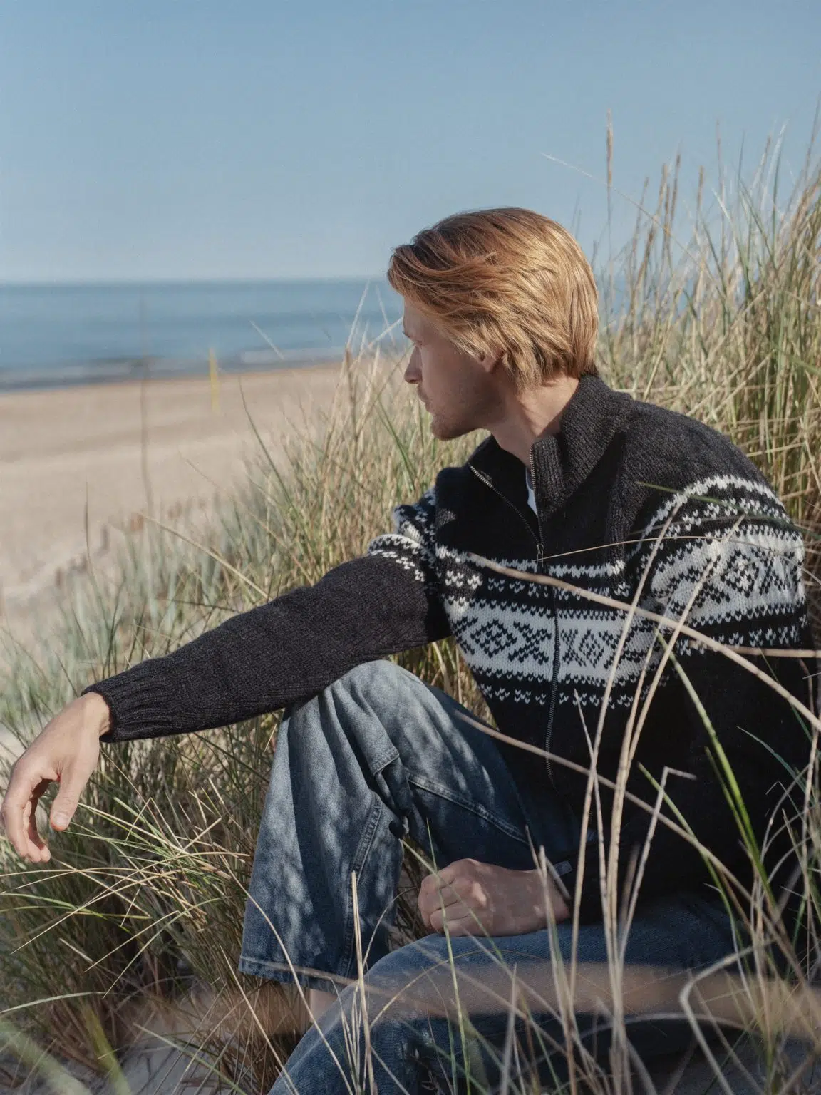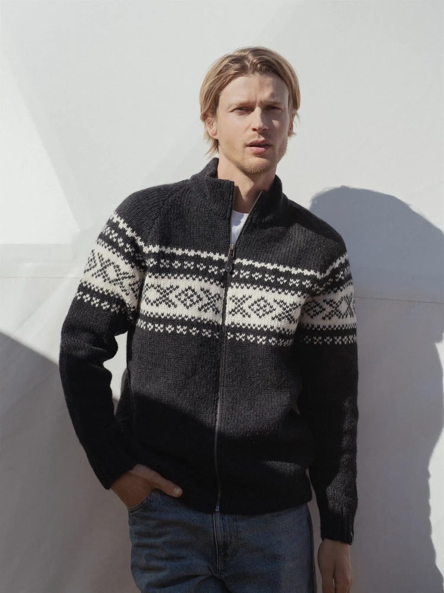 Ērta un silta norvēģu stila vilnas jaka ar rāvējslēdzēju.