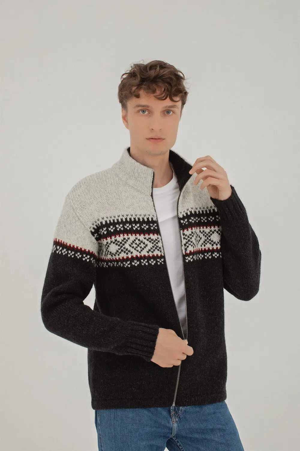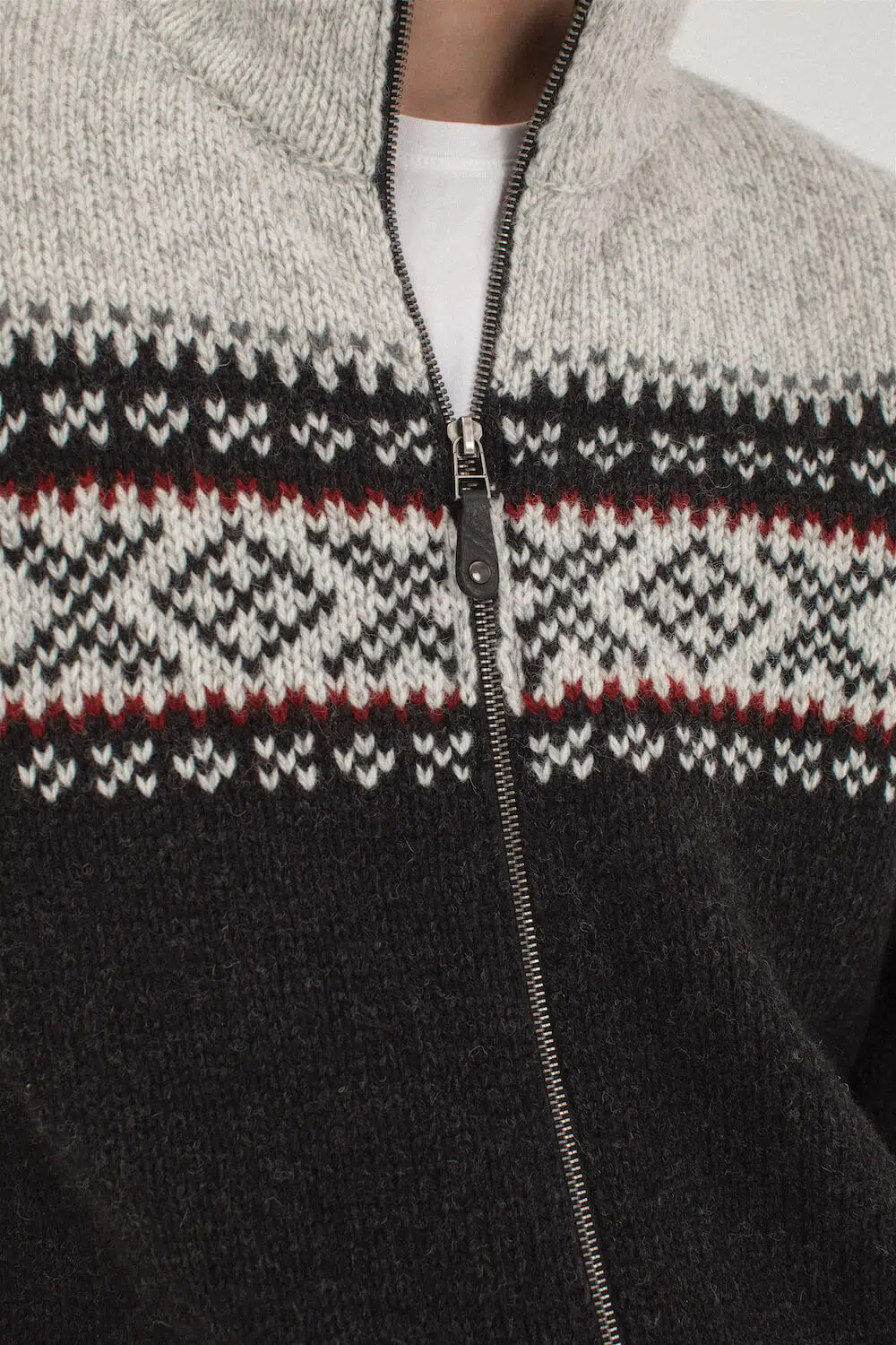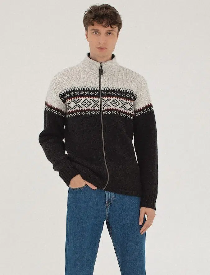 Ērta un silta norvēģu stila vilnas jaka ar rāvējslēdzēju.