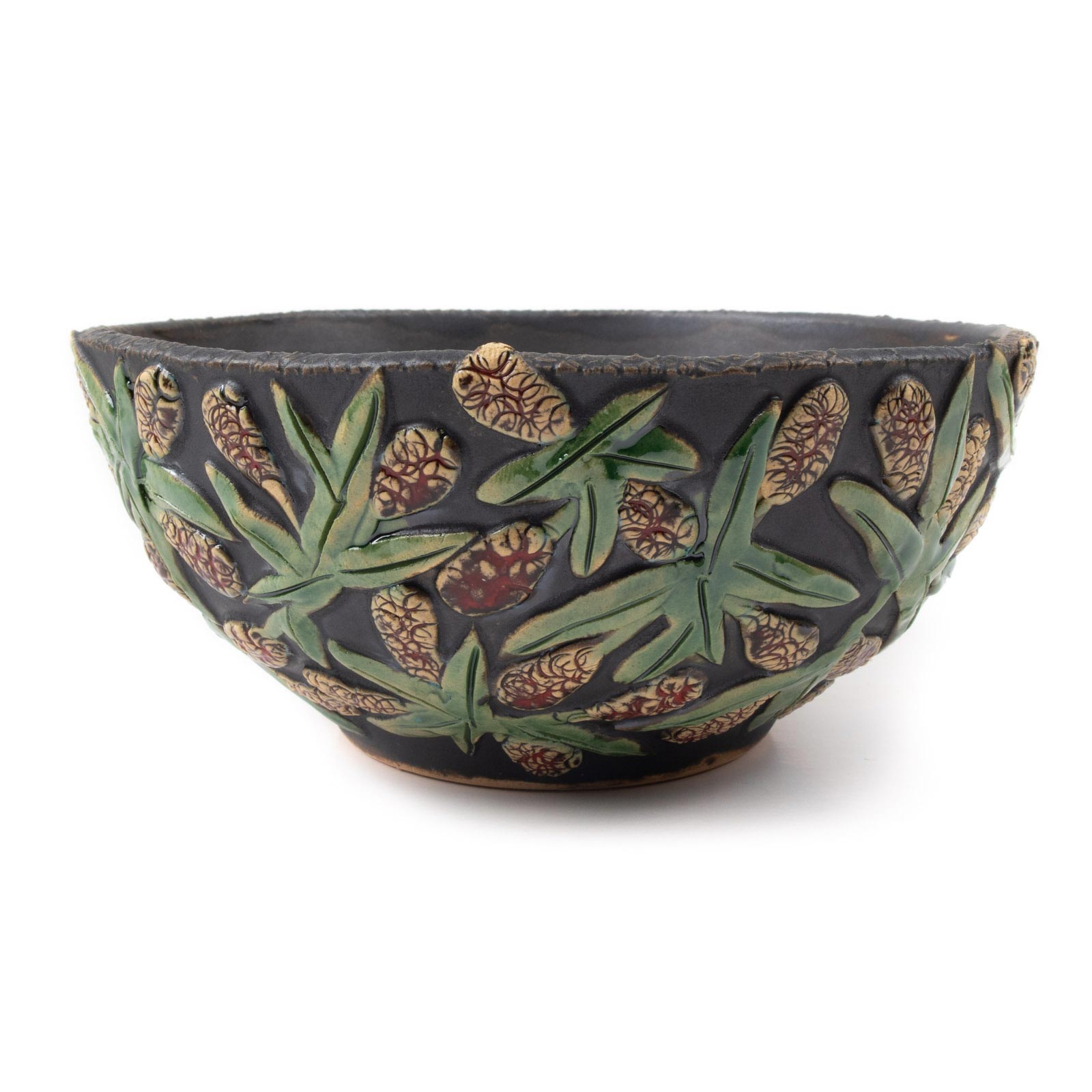 Round ceramic bowl with red flowers. 100% handmade.