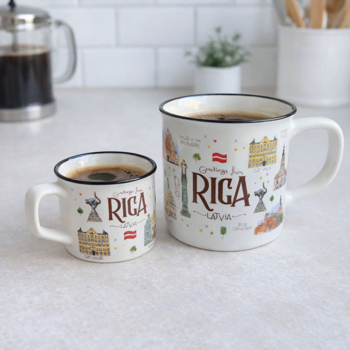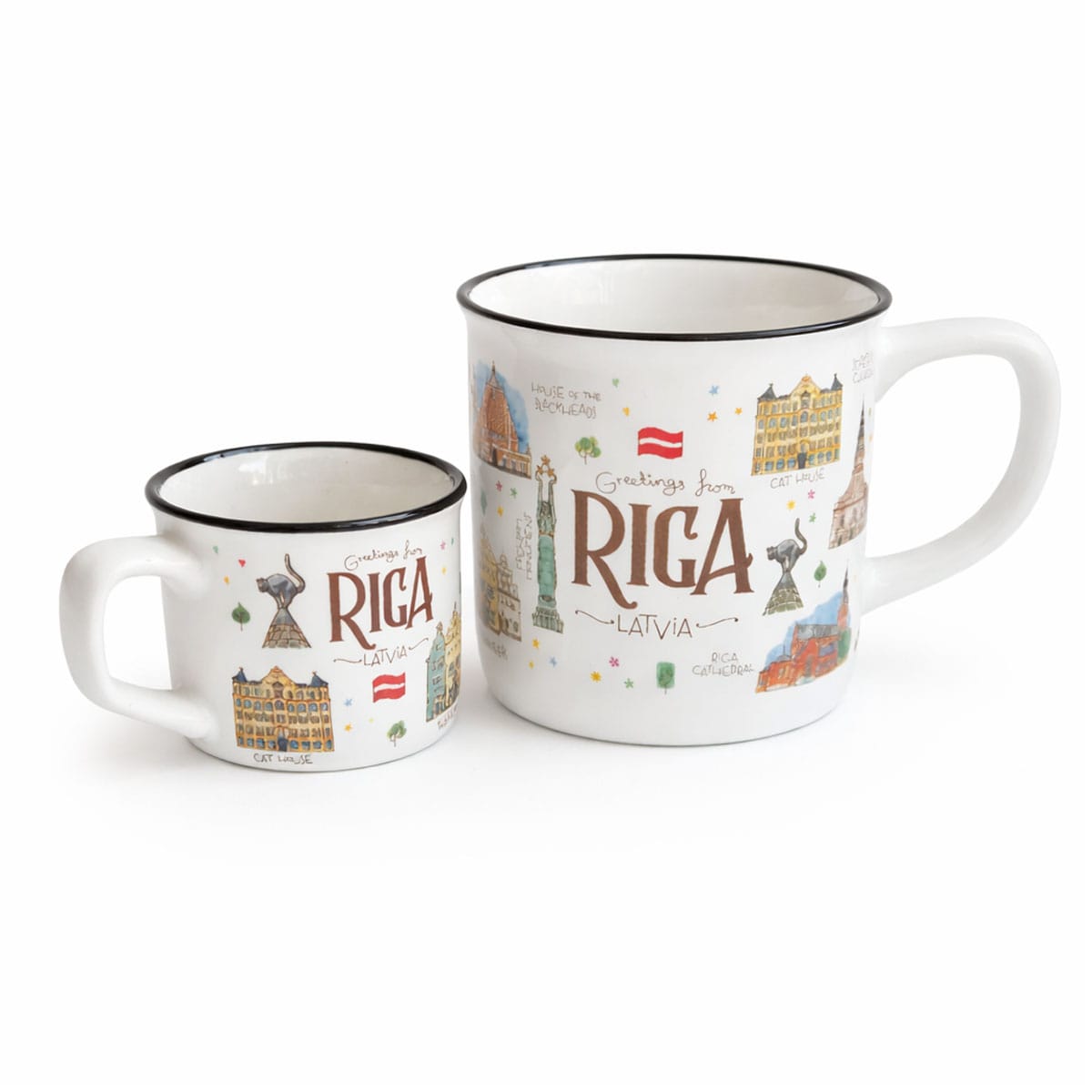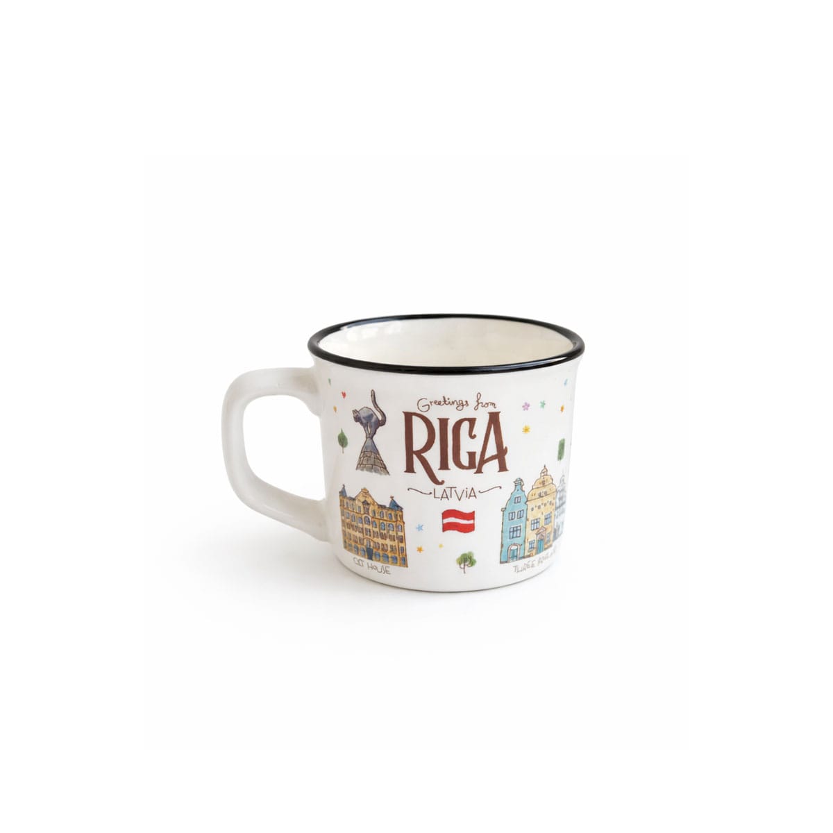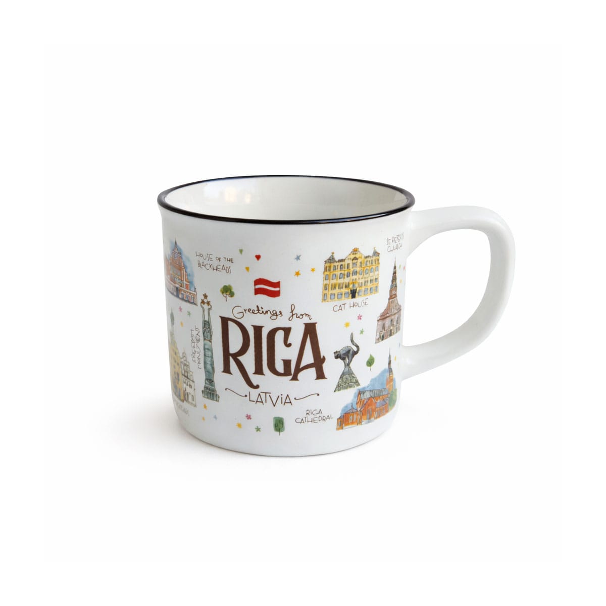 A ceramic mug with the watercolor design “Old Town Riga” is created by our company’s creative team and is available exclusively in our brand stores. You won’t find them anywhere else!