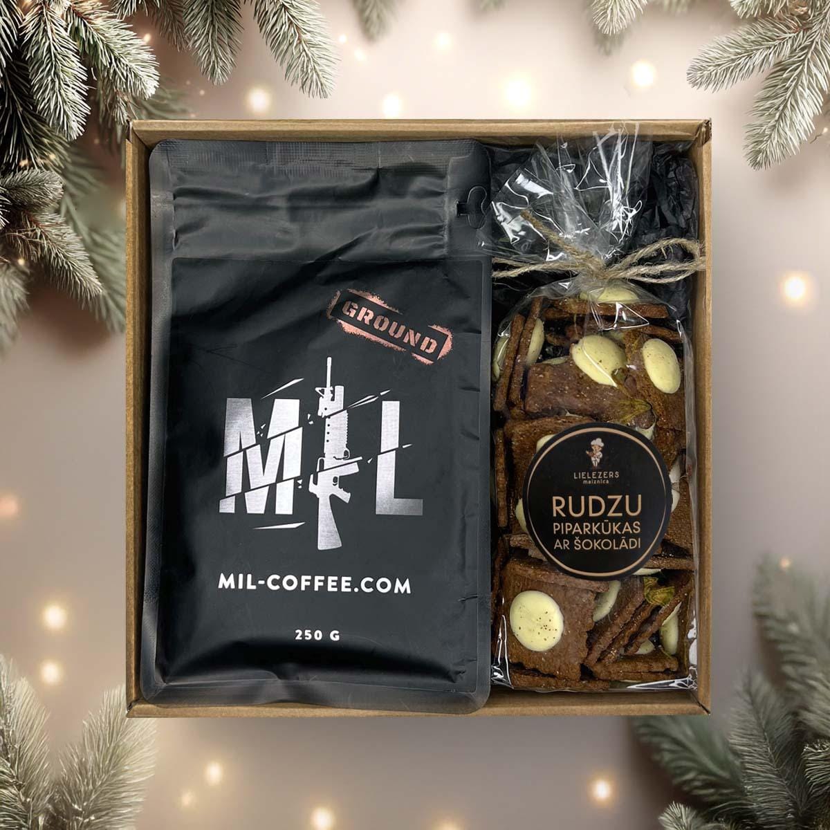 This Christmas gift set is a true treat for coffee lovers and food enthusiasts! It includes MIL-COFFEE — the perfect choice for winter morning rituals. The aroma of freshly brewed coffee will fill the home with warmth and coziness, bringing comfort in the cold season. Paired with the coffee are crispy cheese crackers, a delightful addition to Christmas treats or simply a tasty snack to enjoy.With coffee, tea, or even as a snack after a long night of wrapping gifts — these crackers will be a true lifesaver. MIL-Cofee – born in the heart of Latvia