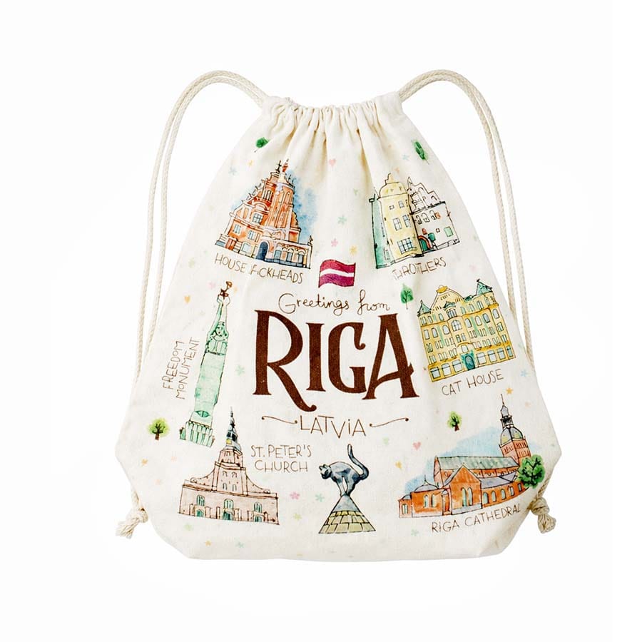 The bag features the most iconic landmarks of Old Riga in a charming watercolor illustration that works as a visual guide to Latvia’s capital: