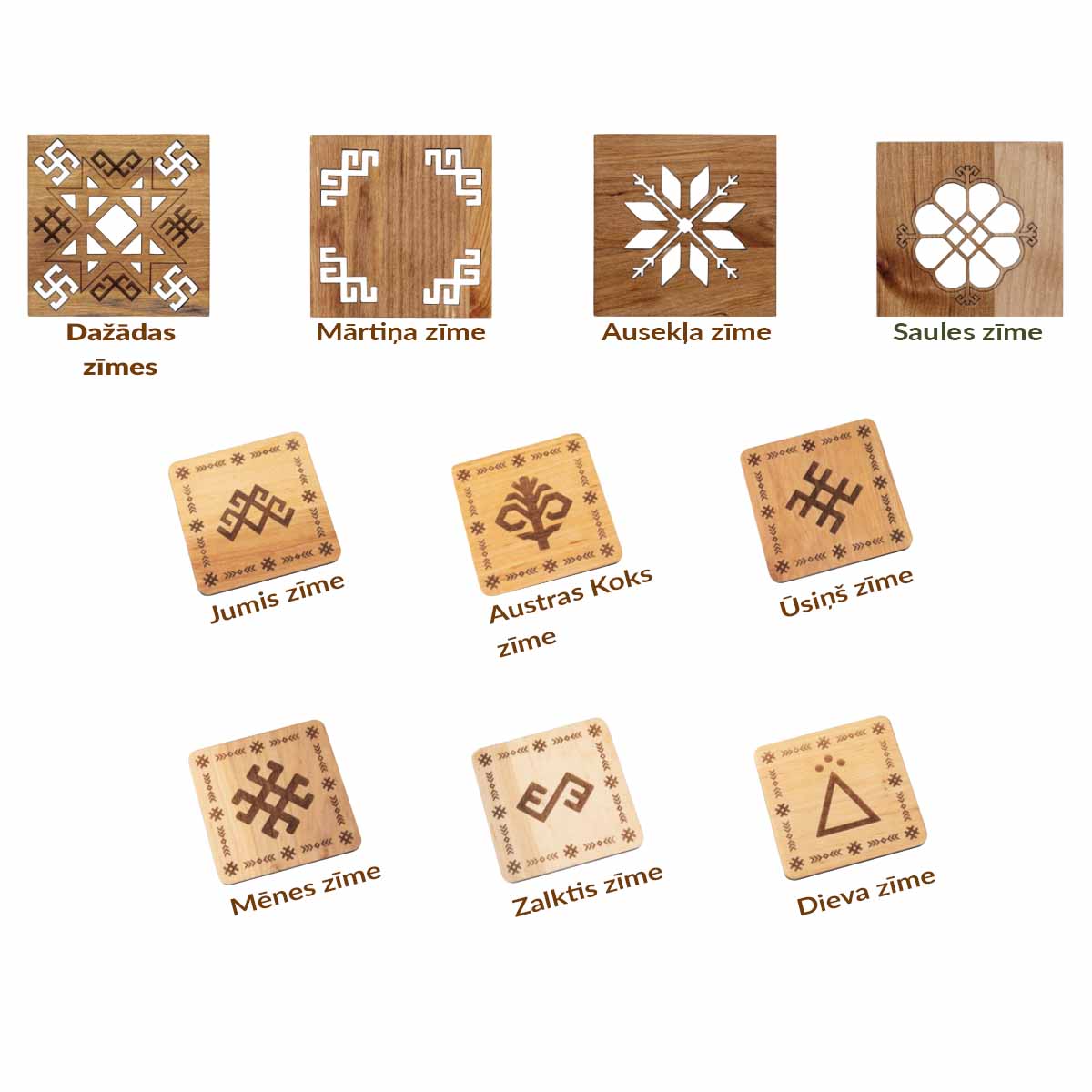 – 1 wooden coaster with Latvian ornaments – a practical and aesthetic accessory that protects surfaces while adding a touch of Latvian heritage to your interior.