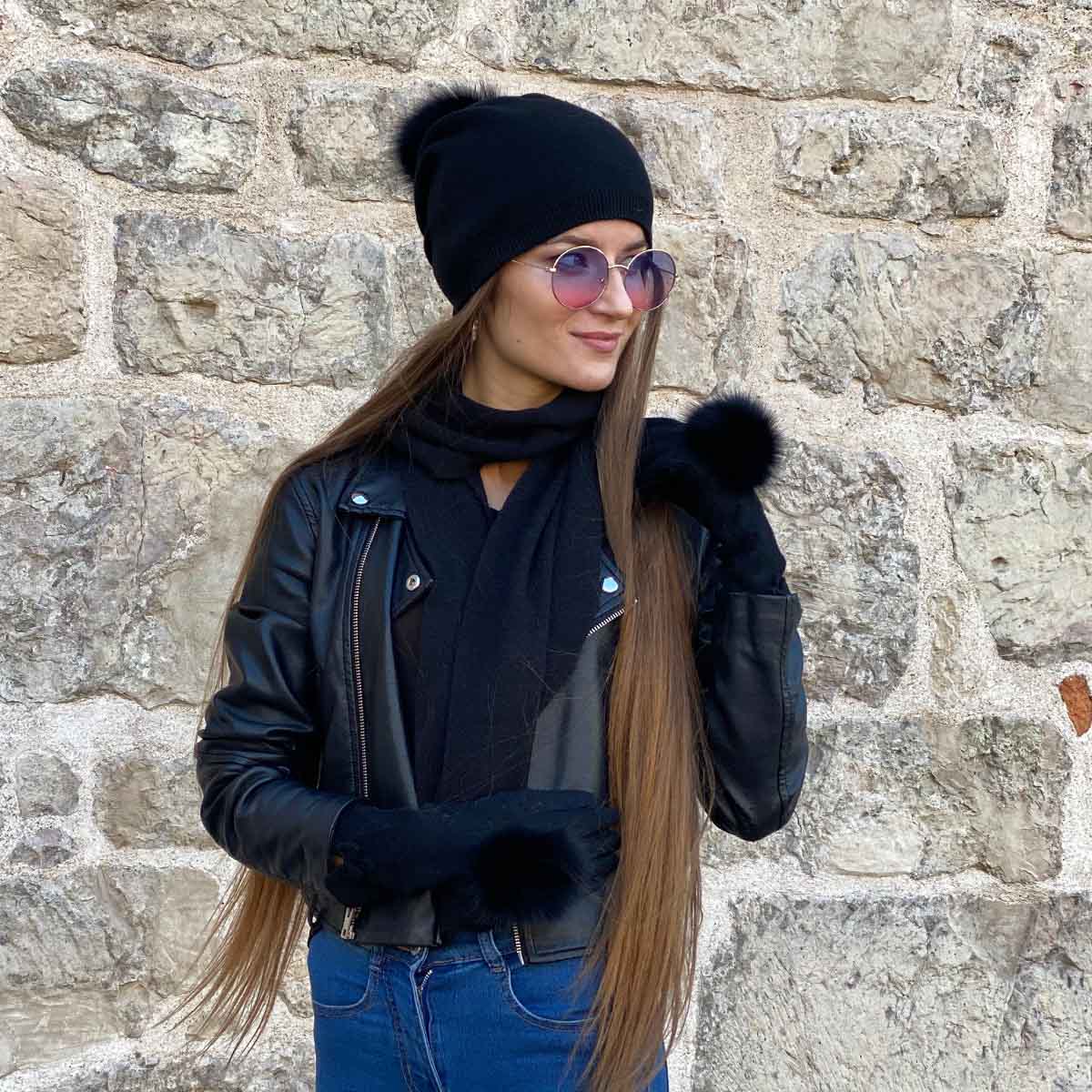 This knitted cashmere hat with a fur pom pom is fashionable, warm, and will always make you feel elegant!