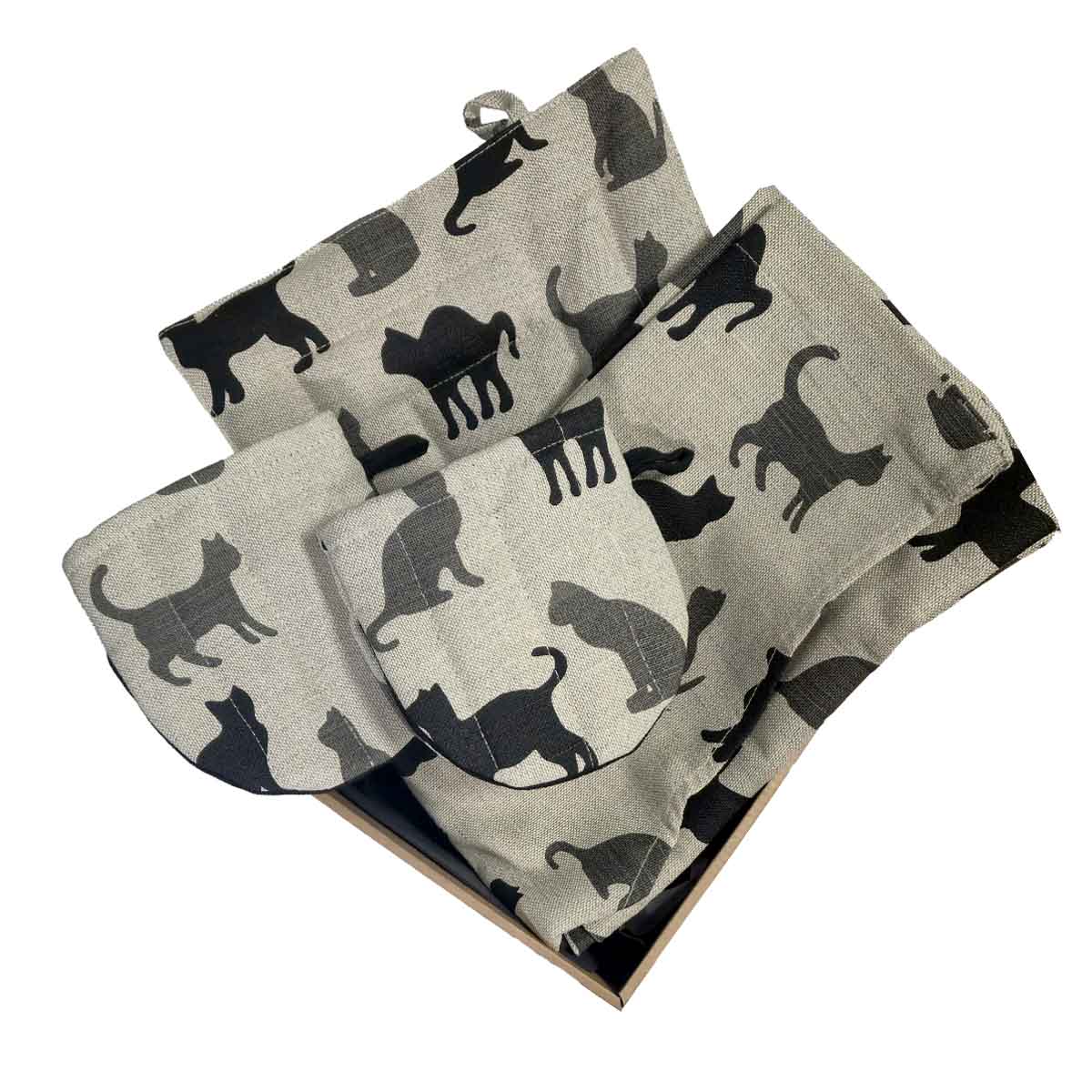 All items are decorated with a playful cat pattern in black and grey, making this set not only practical but also fun. It’s a great gift idea for family, friends or colleagues who love cooking and cats.