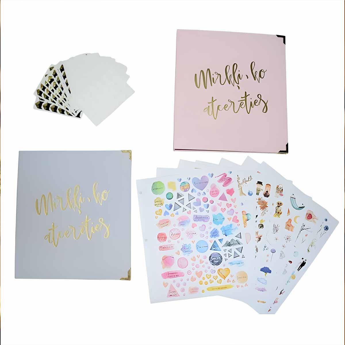 Self-adhesive photo corners for attaching up to 180 photographs.